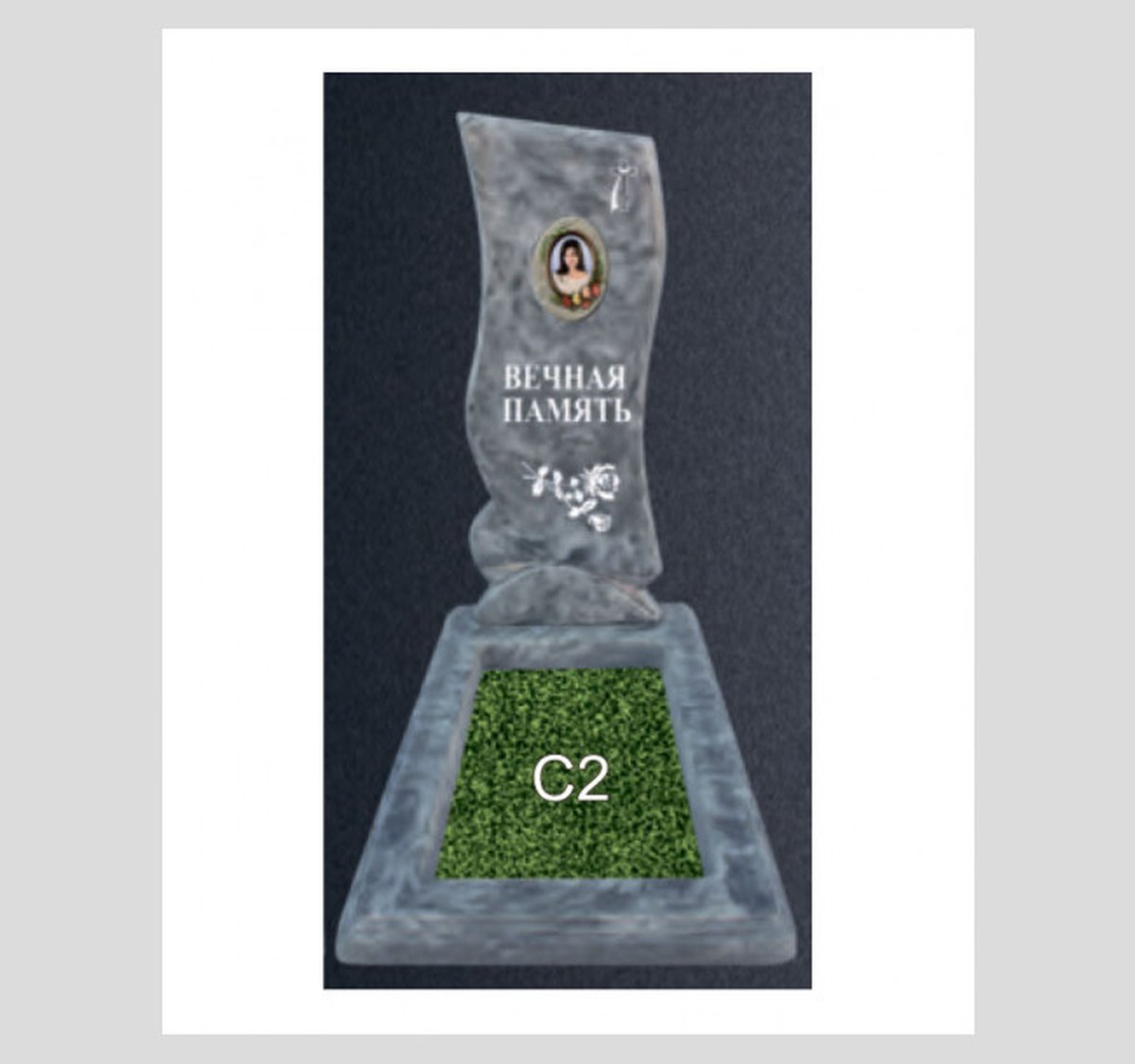 Материал: гранит. Конструкция стеллы и цветника усилена арматурным каркасом.