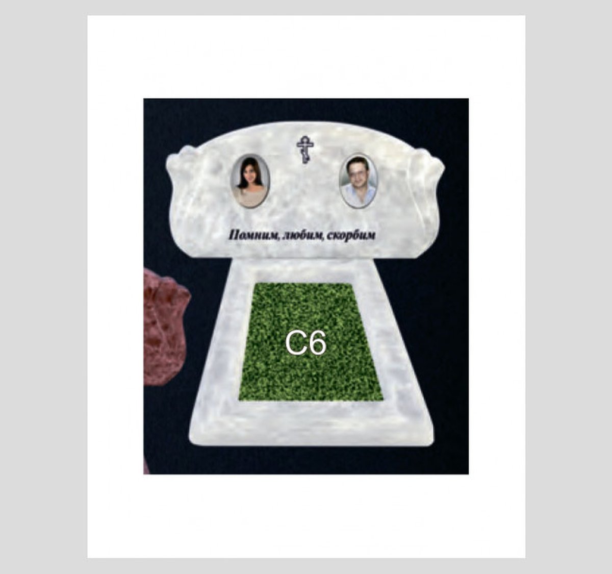 Графическое оформление стеллы: стандартное православное - крест, текст, цветы; или без оформления.