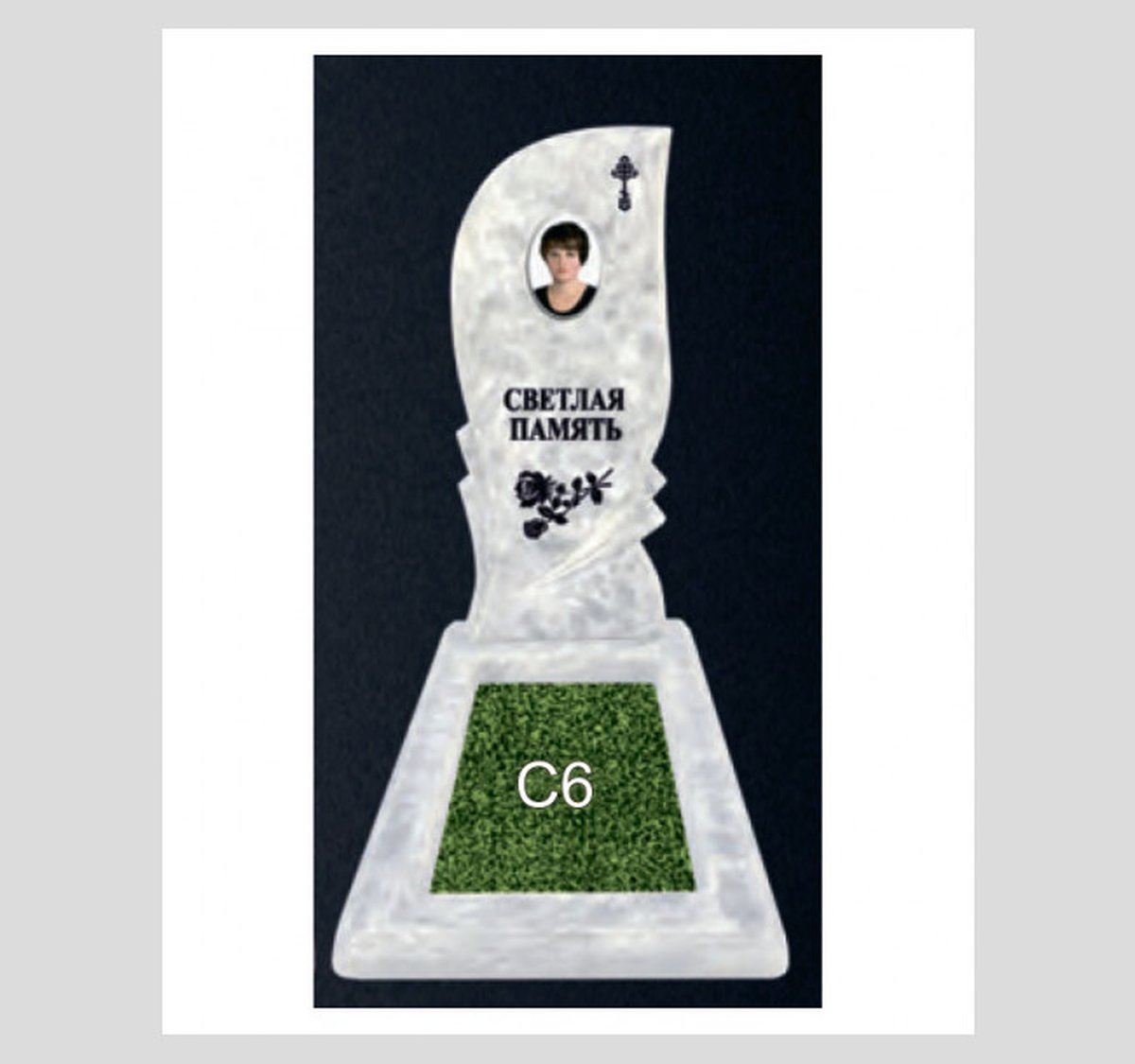 Графическое оформление стеллы: стандартное православное - крест, текст, цветы; или без оформления.