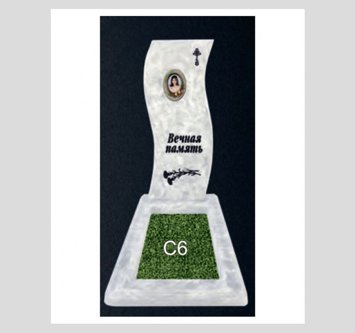 Графическое оформление стеллы: стандартное православное - крест, текст, цветы; или без оформления.