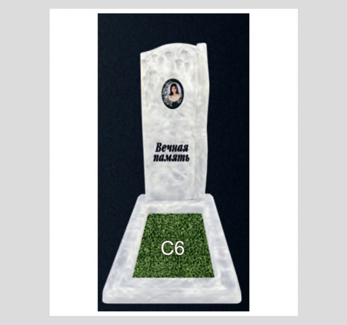 Материал: гранит. Конструкция стеллы и цветника усилена арматурным каркасом.