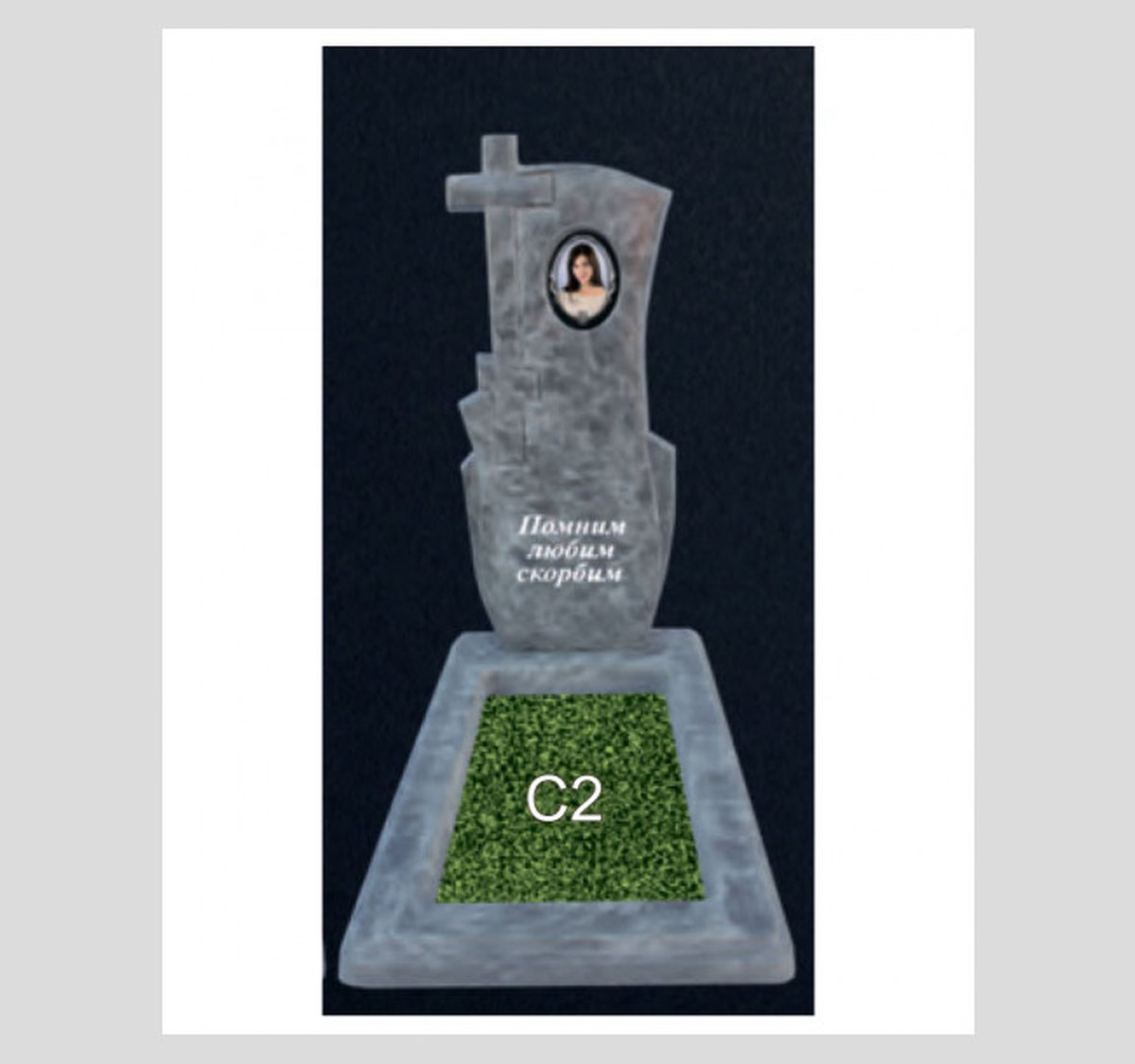 Материал: гранит. Конструкция стеллы и цветника усилена арматурным каркасом.