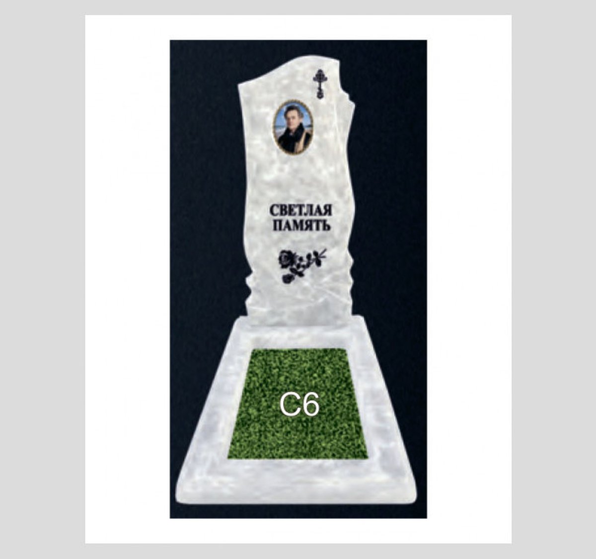 Графическое оформление стеллы: стандартное православное - крест, текст, цветы; или без оформления.
