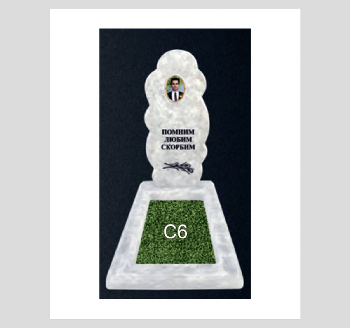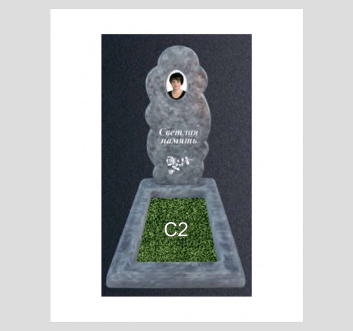 Материал: гранит. Конструкция стеллы и цветника усилена арматурным каркасом.