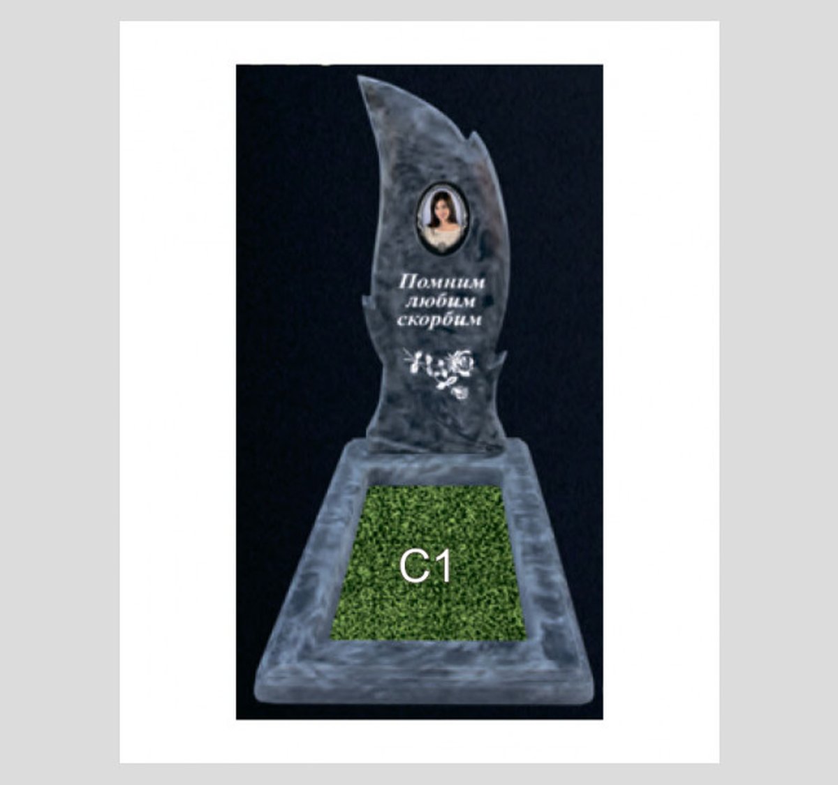 Материал: гранит. Конструкция стеллы и цветника усилена арматурным каркасом.